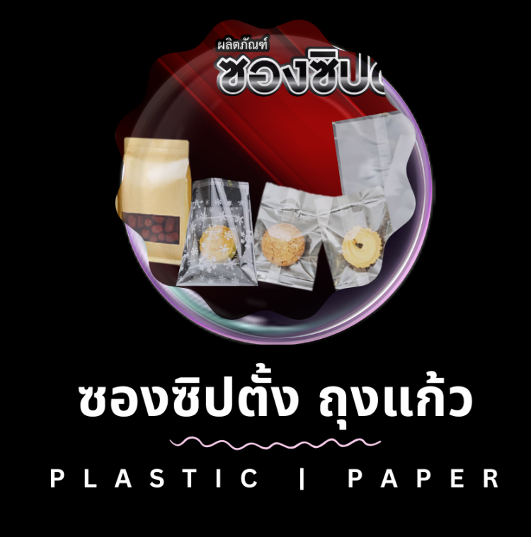 ถุงแก้ว ถุงฝากาว ซองซิปล็อค ซองซิปตั้ง ซองขนม สินค้าเบเกอรี่ ฯลฯ.